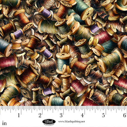 Spools of colorful thread from the Forget Me Not collection by Marilyn Lee from Blank Quilting Corporation (FORGETMENOT-B-4280-30).